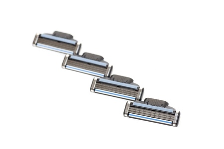 Closeup macero of shaving razor blades isolated on white background with shallow depth of view.