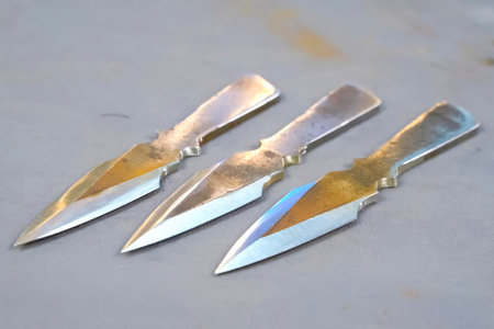 Sharpened and polished homemade throwing knives, making cold weapons.