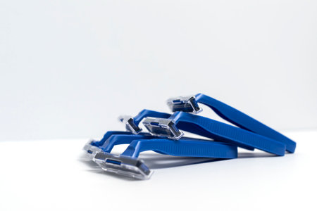 Three blue razors over white