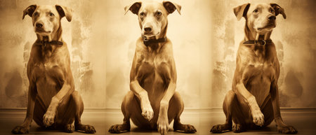 Three dogs sitting in front of the wall. Collage. Selective focus.