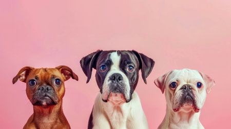 Trio of adorable dogs on pink background