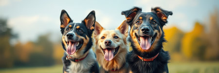 Banner with three hungry dogs. Animal pet food. Generate Ai