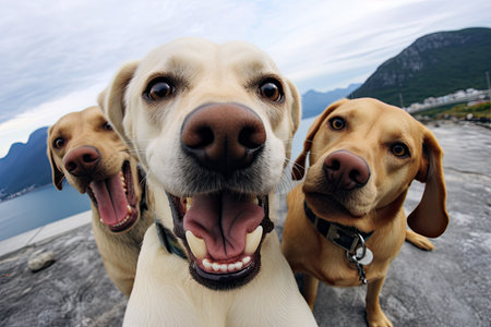 Portrait of Three Surprised Dogs Generative AI