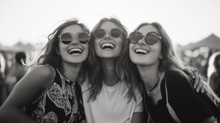 Three women share a joyful moment, close up, bright smiles, warm friendship and happiness.