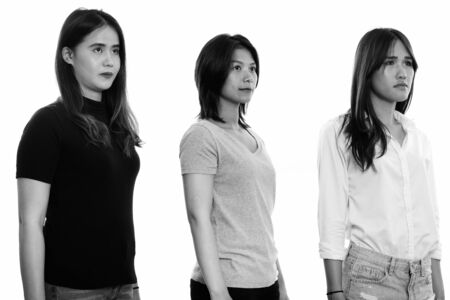 Studio shot of three young Asian woman friends thinking