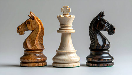 A white king stands at the center of a critical decision, flanked by two powerful knights representing opposing forces or difficult choices.