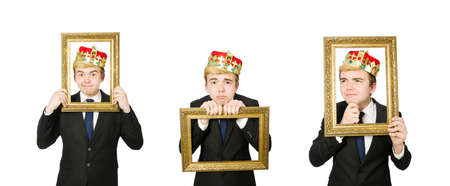 Businessman with crown isolated on white