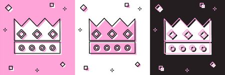 Set King crown icon isolated on pink and white, black background. Vector Illustration