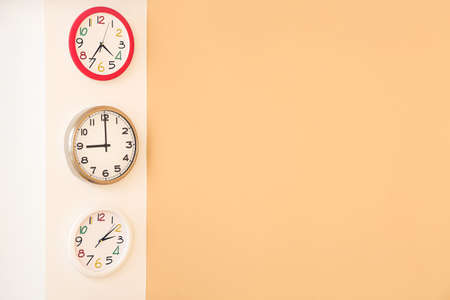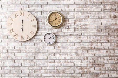 Clocks tell time and use time effectively. Work and life. Stopped hands. Studio photography.