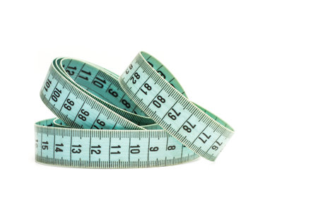 A green measure tape isolated on a white background