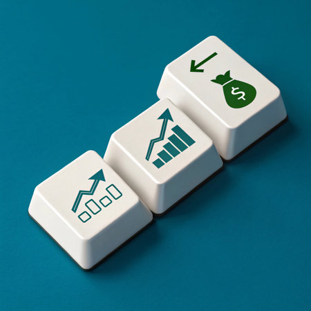 Financial Growth Concept, 3D Keyboard with Money Icons & Arrows V8