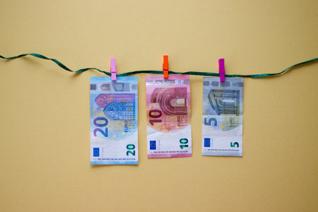 Euro (EUR) banknotes, currency of European Union (EU) with copy space