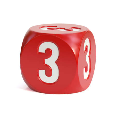 Dice font on white background 3d rendering number 3