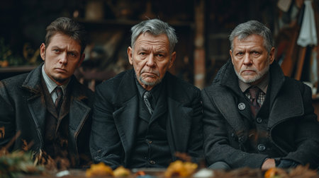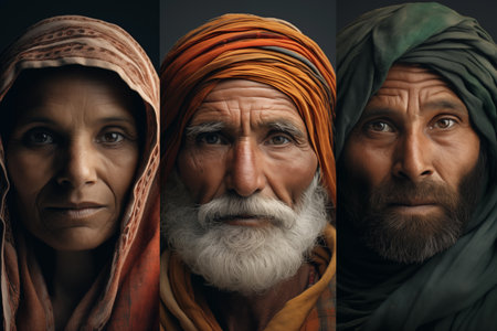 Close-up portrait of three African people of different ages, showcasing a serious expression. They are stylishly dressed in casual, autumn fashion, emphasizing diversity and unity. AI generated