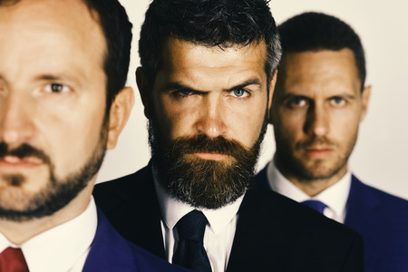 serious faces. Conflict and business concept. Businessmen wear smart suits
