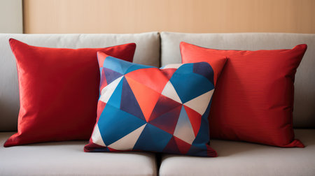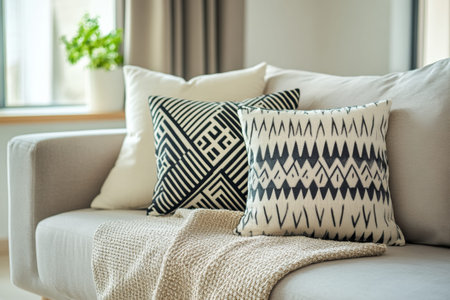 AI Generated. Stylish Geometric Throw Pillows on a Sofa
