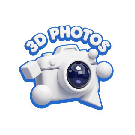 A charming, minimalist graphic featuring a small blue camera atop blank pages and a lavender base.