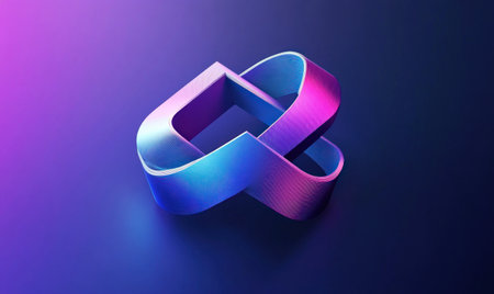 Blue and purple gradient background, three-dimensional abstract ribbon elements, symmetrical composition, 3D rendering effect, minimalist style, blue tone, light and shadow effects, high saturation, smooth lines, cool tones, focusing on the theme of technology. The logo is in the foreground with a sense of space, highlighting the brand presence. High resolution, 8K. --ar 5:3 --v 6.1 Job ID: ee33ba4d-eb4f-42e2-bfd3-c4d101b1feb5