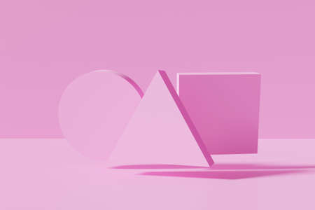3d render of pink simple geometric shapes like circle triangle and square on monochrome background Korean inspiration