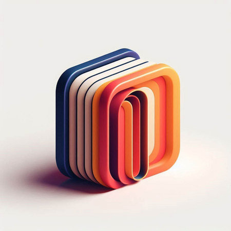 A colorful isometric cube with three smaller cubes on the side, set against an orange background. The large cube stands out against its tiny surroundings, creating a striking contrast. It has rounded corners that give it a soft, elegant simplicity. This design symbolizes growth or new beginnings. --chaos 30 --ar 16:9 --v 6.1 Job ID: 8fa8bced-70d5-4bb1-ae8e-c088298392bd