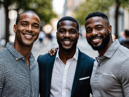 Three friends posing together with the main person in focus and the other two slightly blurred in the background, showing the depth of their bond and camaraderie.
