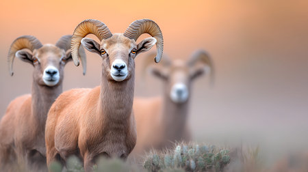 group of mountain goats, Family mammals with large horns