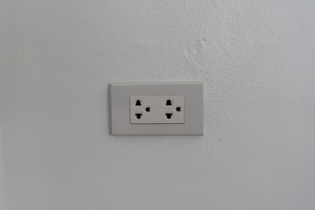 White electric outlet mounted on white wall