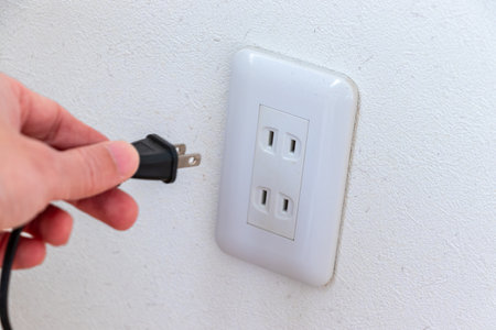 Electric plug and wall socket. Generative AI