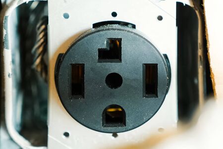 old white electrical socket, closeup of photo with shallow depth of field