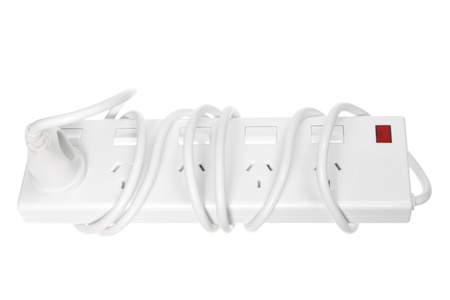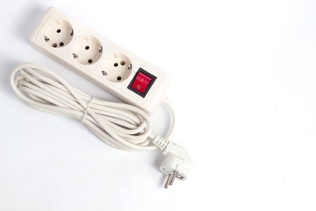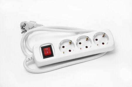 White electric extension cord, great design for any purpose. white background. network extension cord.
