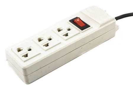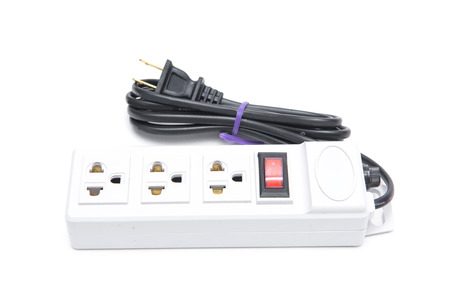 Rubber extension power strip or trailer plug isolated on white background. Concept electric equipment or tool for connect to appliance that need electricity. Electrical peripherals
