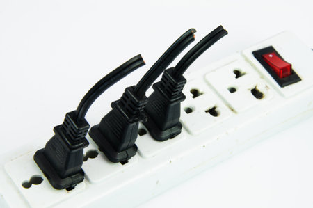 Outlet, Electric Plug, Power Cable. Selective focus on black power plugs. Copy space.