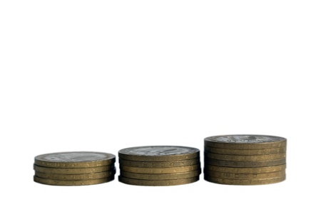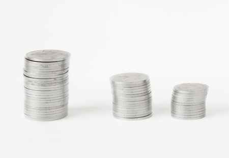 piles of coins on white background