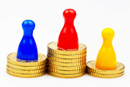 investment concept, color figures on a white background with pile of coins