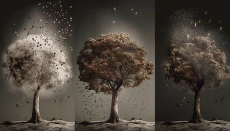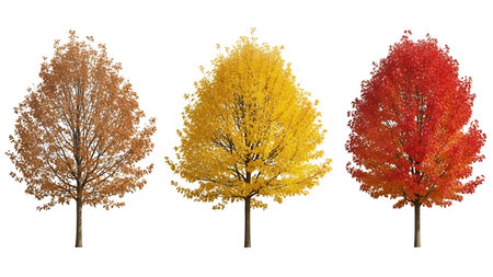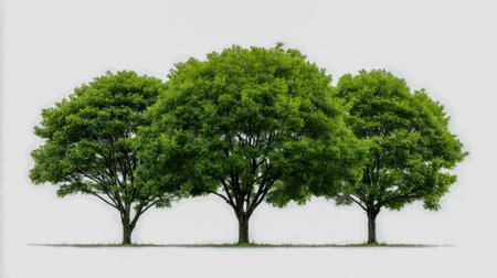 Trio of vibrant, full-canopy trees aligned perfectly, radiating lively energy and calm elegance amid a simple, unobtrusive backdrop.