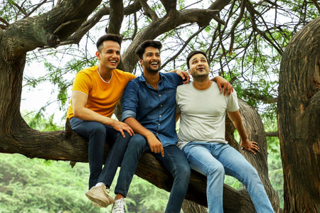 A diverse group of friends laughing and bonding together in a natural,outdoor setting,showcasing the importance of social connections,mental wellness,and the pure joy of shared experiences.