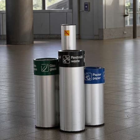 Several trash can for sorting and recycling