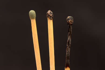 Group of burned matches on beige background, hard shadows, aesthetic, ideas, emotional burnout, teamwork. Generative AI.