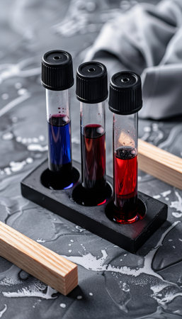 Medical test tubes with liquid in laboratory setting science and healthcare concept