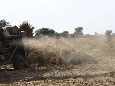 rajasthan,india.29april,2020, a farmer during harvesting crops in the field