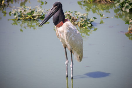 Black necked stork, Ciconia nigra, single bird in water, South Africa