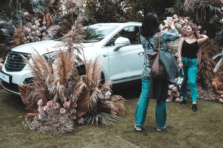 Moscow, Russia - August, 2018: people making photos at outdoor festival- Veter Summer Festival in Moscow