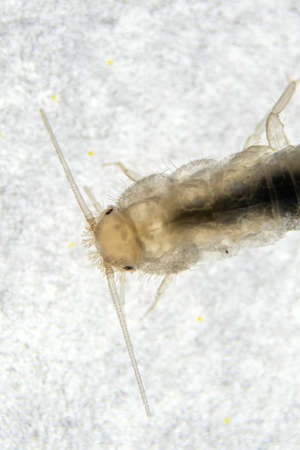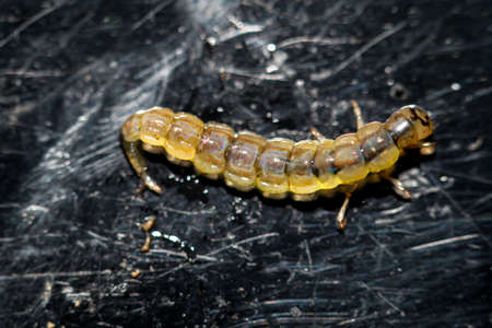 aquatic insect larva in nature, note shallow depth of field