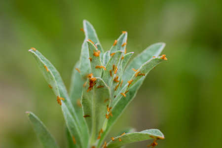 Aphids crawl on green plants