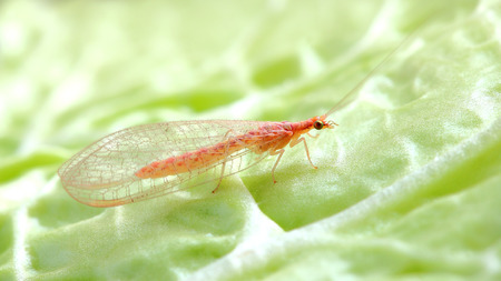Big lacewing flies larvae - aphid lions on green leaf