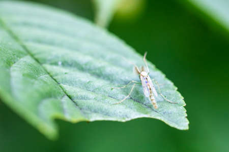 A mosquito sits on a green leaf