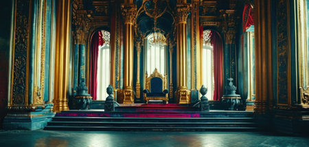 Throne Room with Gold royal chair, Luxury royal armchair in the interior of the royal palace, Ai generated