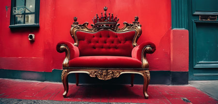 VIP throne, Red royal throne, Red royal chair against a red and black background