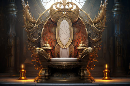Throne of the King , ornately decorated with gold and jewels, symbolizing power and royalty, Ornamental chair befitting a monarch, AI generated