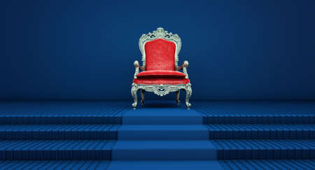 Red royal chair on a blue background, VIP throne, Red royal throne, 3d render